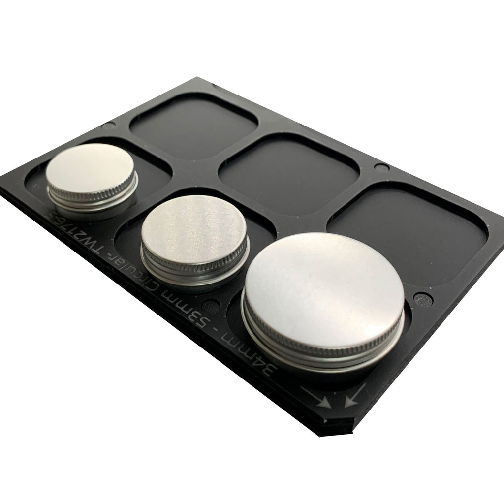 This printer jig is ideal for printing a range of circular shaped items such as aluminium tins and poker chips or tubs and pots that are used for Candles, Cosmetics,